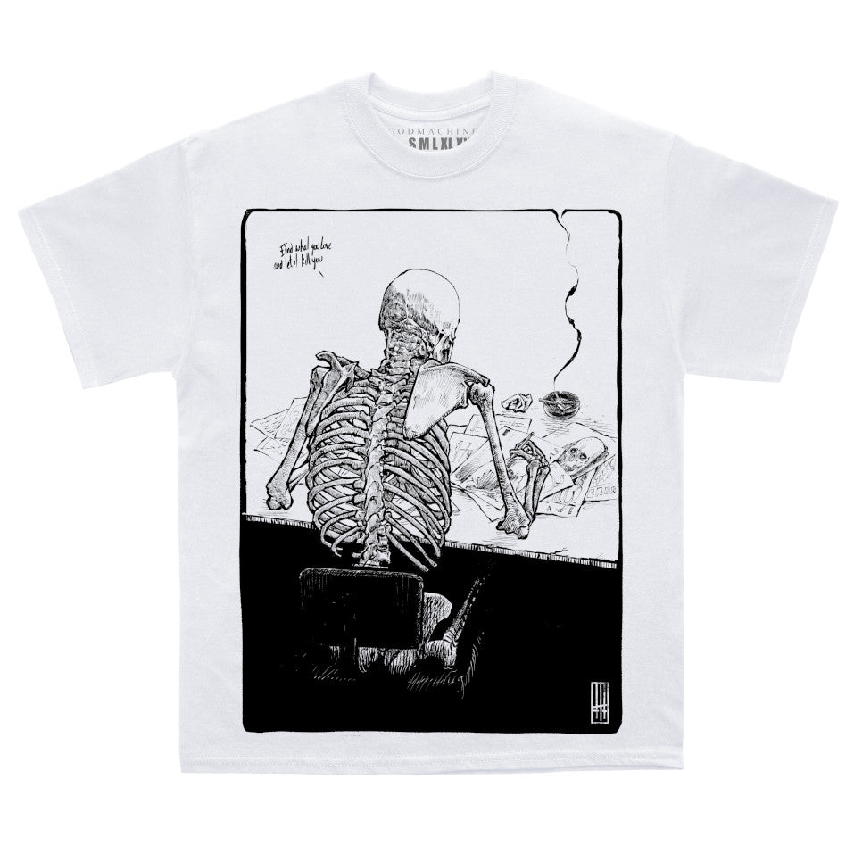 White T-Shirt // Oversized Chest Print in Black // Plain Back // Also available on a Black T-Shirt