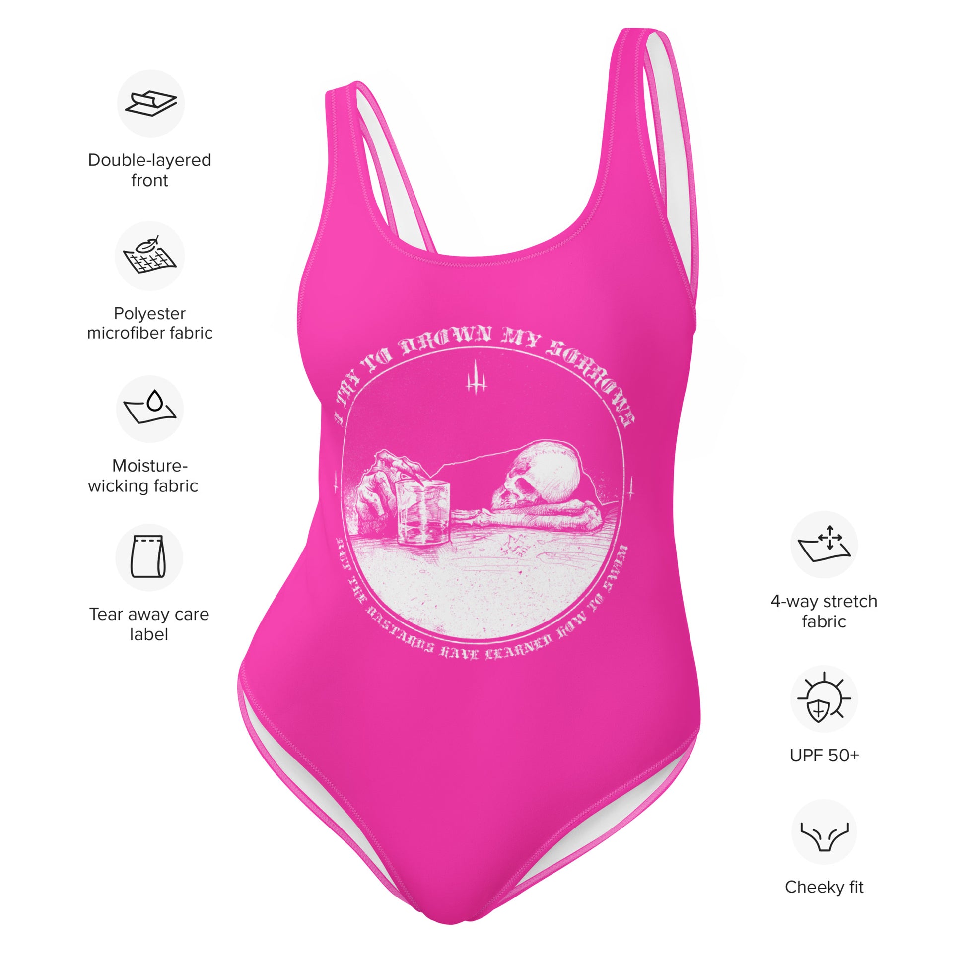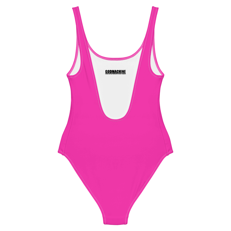 A cheeky one-piece swimsuit featuring Godmachine's 'Drown' Artwork