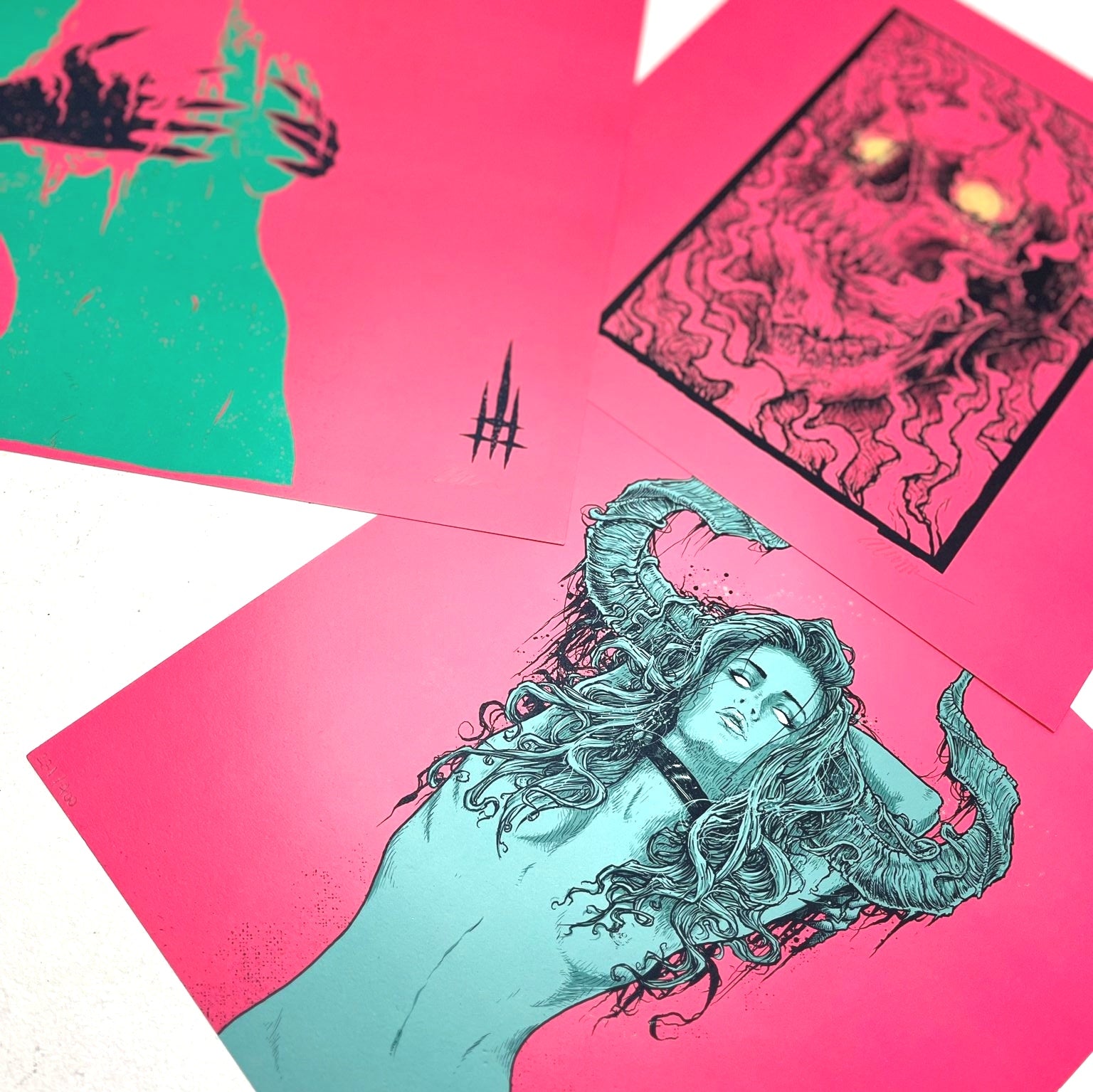-Three exclusive Godmachine art prints (Signed and numbered)