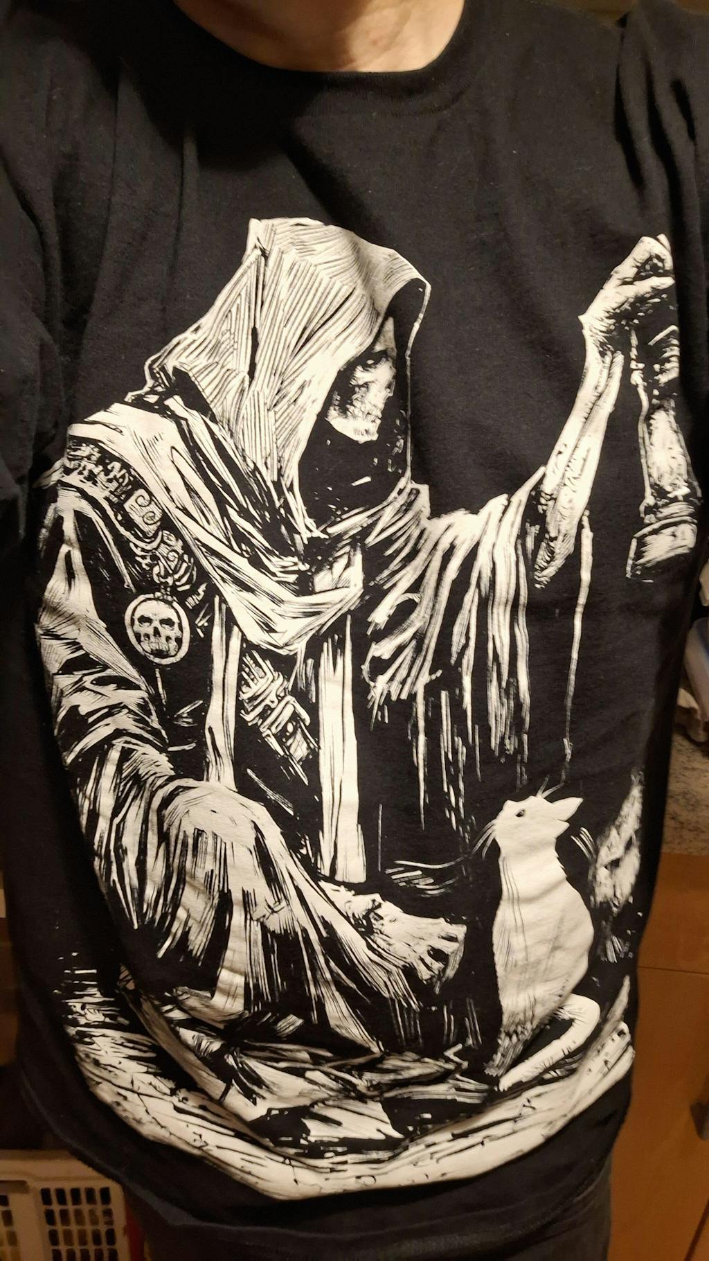 It's art you can wear. Thought-provoking, eye-catching art on your body. I love the cats on the sleeves because it looks like they want to give me boops. It's adorable and haunting all at once. My only detractor is the shipping to Germany. I'd buy so much more if we could find a way to avoid so many fees. But, I'm beyond satisfied with the shirt itself.